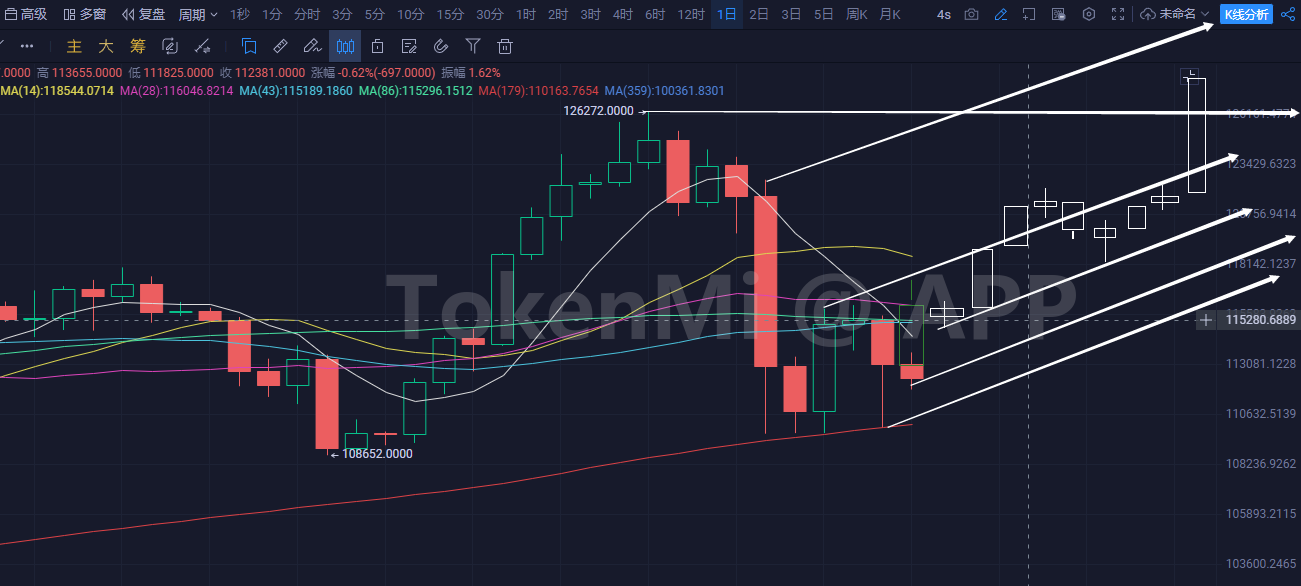 刚才没接的话,只能回落112000的时候接了,支撑变了