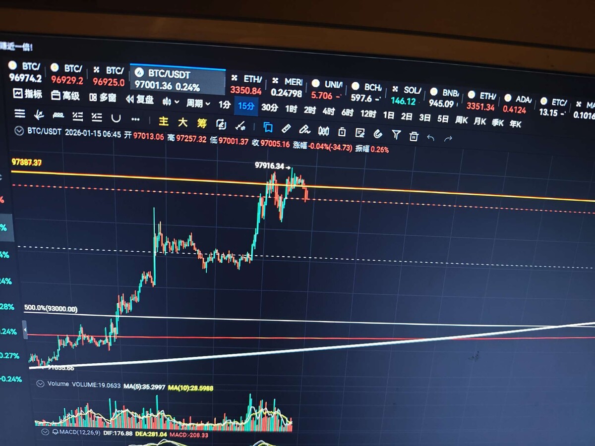 嗯,给到机会果断进场。周六。周一各种大级别换线。所以,95-93只上都可以,具体多少还得等时空临近才能锁定精准区间