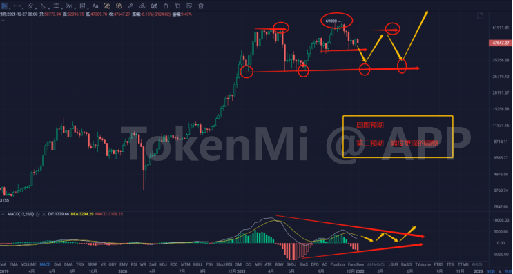 第二预期,更深幅度的调整,结合位置能量,调整结束时间预期在2022年3个月左右。