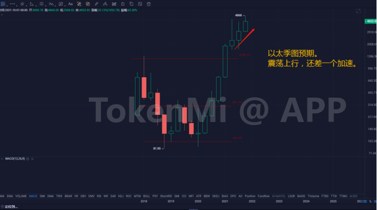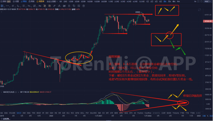 第一时间,时间是需要位置,能量变化来决定,(位置以大区间2021年第一季度3--6万美金为依据,平衡位置4--5万美金选择方向,位置不变,时间预期不断延长)