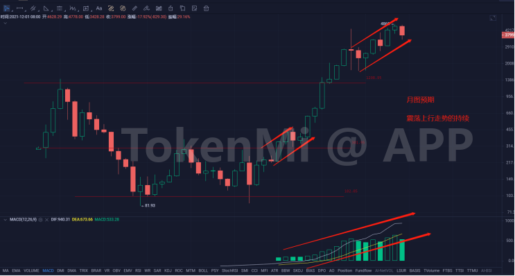 月线的预期只是比季线更细节,震荡走势和多头能量持续,同步意味着加速需求。反之,震荡上行节奏改变,回落通道50%的上行才是调整的开始。