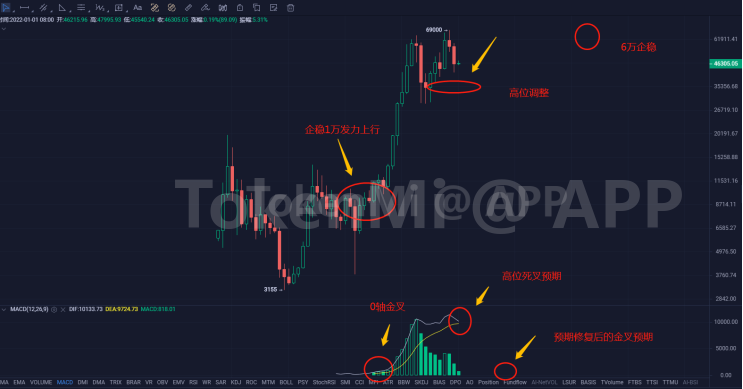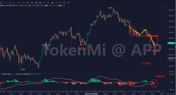 二是近期的回落试探到了40000美金前期的支撑位置。目前整体来看位置能量的变化在更小周期里会对大周期的调整有影响,本周能不能有反弹要看更多小周期的细节。注意大饼目前运行步幅,5000美金左右一步,3000美金左右小区间调整。
