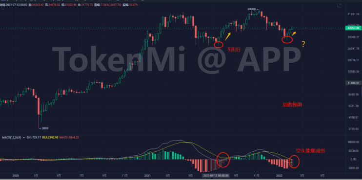 BTC:说到大饼,周线的调整反弹,这是目前最主要的,MACD空头能量的减弱也是反弹的关键。此前大饼5连阳,目前大饼已经连续两周收阳,本周也在进一步的反弹中,但是日线目前不配合需要注意小周期短时间的小幅回落预期。